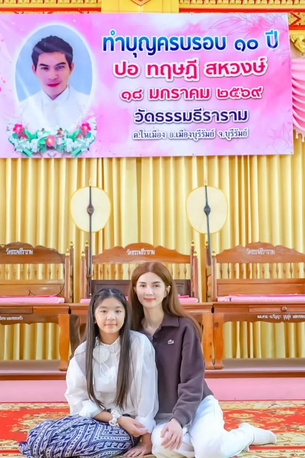 โดยวันที่ 18 มกราคมที่ผ่านมา "โบว์" ได้เดินทางกลับไปที่จังหวัดบุรีรัมย์ บ้านเกิดของ “ปอ ทฤษฎี” เพื่อไปทำบุญ ณ วัดธรรมธีราราม โดยบรรยากาศในงานเต็มไปด้วยความอบอุ่น พร้อมทั้งยังมีสมาชิกในครอบครัวอาทิ คุณปู่ คุณย่าของ “น้องมะลิ” รวมถึงญาติๆ ก็มาร่วมทำบุญด้วย