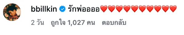 "ผมภูมิใจในตัวคุณมากบิวกิ้น ยังจำวันที่คุณใส่สุทเหลืองขึ้นเวทีร้องเพลง you are my everything ครั้งแรกในงานแถลงข่าวซีรีส์ได้อยู่เลย วันนี้คุณทำให้คนมากมายมีความสุข ขอให้คุณมีความสุขเช่นกัน เดินต่อไปส่องแสงต่อไปนะไอ้ลูกชาย @bbillkin" ทางด้านหนุ่ม "บิวกิ้น" เองได้โพสต์ตอบกลับ พร้อมเขียนแคปชั่นว่า "รักพ่อ"