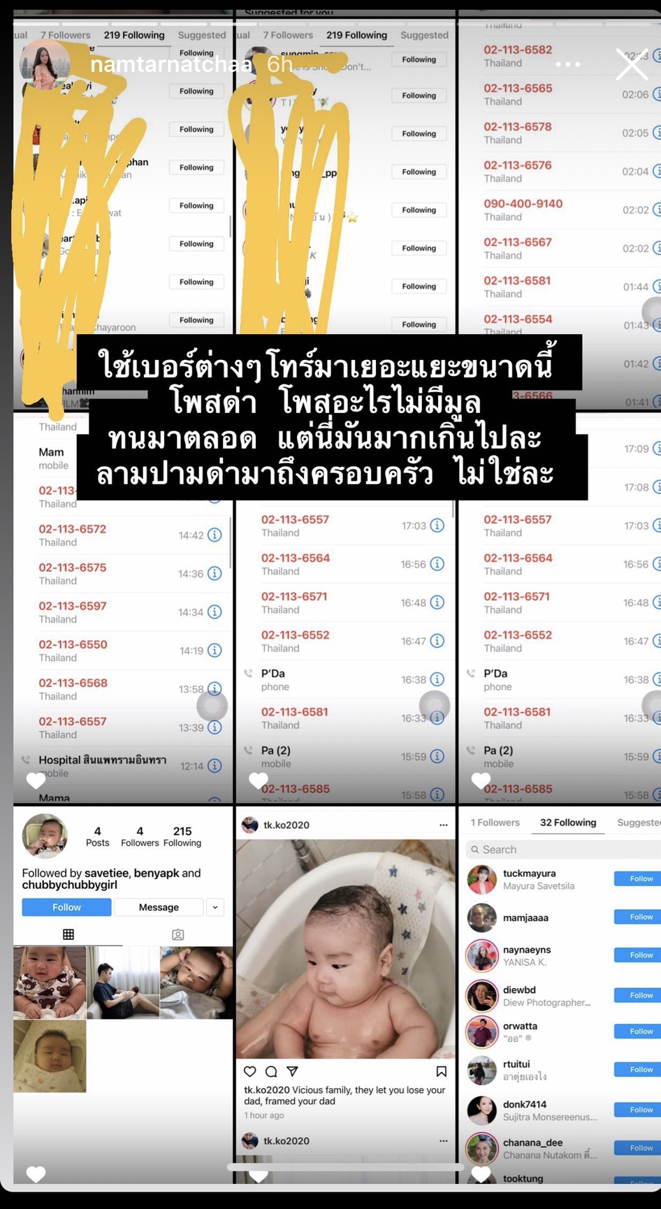 ล่าสุดเธอเคลื่อนไหวอีกครั้งผ่านไอจีสตอรี่ แฉพฤติกรรมอดีตสามี เป็นภาพแก้วใส่เครื่องดื่มที่มีรอยลิปสติกของผู้หญิง พร้อมข้อความว่า อดีตสามีพาผู้หญิงขึ้นคอนโด ตอนแรกฝ่ายชายไม่ยอมรับ แต่พอเธอบอกว่าจะไปดูกล้องวงจรปิด อดีตสามีก็สารภาพทุกอย่าง นอกจากนี้ยังมีการโพสต์ภาพที่ถูกส่งแชทมาต่อว่า ทั้งเรื่องการแต่งตัว ทำสีผม และเรื่องอยากได้ลูกคืน รวมถึงมีการโทรมาก่อกวน