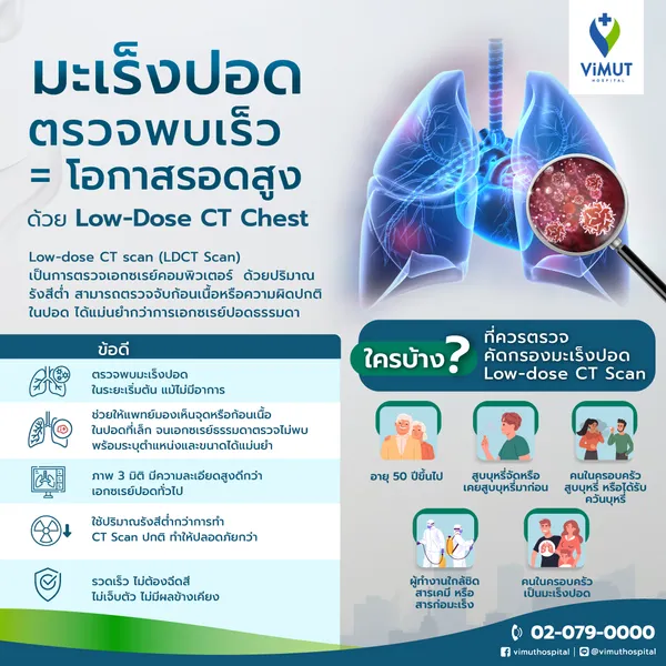 ผศ.นพ.วิรัช ตั้งสุจริตวิจิตร แพทย์ผู้ชำนาญด้านโรคระบบทางเดินหายใจ โรงพยาบาลวิมุต อธิบายว่า LDCT ตรวจคัดกรองมะเร็งปอด — ไม่ใช่แค่เรื่อง “รู้ผล” แต่คือเรื่องของ “การรู้เท่าทัน” ทุกวันนี้ การตรวจเอกซเรย์คอมพิวเตอร์ความเข้มต่ำ (Low-Dose CT หรือ LDCT) กลายเป็นเครื่องมือสำคัญในการค้นหามะเร็งปอดระยะเริ่มต้น โดยเฉพาะในกลุ่มเสี่ยงสูง เช่น ผู้ที่สูบบุหรี่ หรือมีประวัติสัมผัสสารก่อมะเร็ง หลายคนอาจมองว่า“ทำLDCT ก็แค่รู้ผลว่าเป็นหรือไม่เป็นมะเร็ง”แต่ความจริงแล้วเรื่องนี้ไม่ได้ง่ายหรือจบแค่การรู้ผลเพียงอย่างเดียวสิ่งสำคัญที่ควรตระหนักคือLDCT อาจพบสิ่งผิดปกติที่ไม่ใช่มะเร็งก็ได้เช่นจุดเงาเล็กๆที่เกิดจากพังผืดหรือแคลเซียมร่องรอยจากการติดเชื้อในอดีตเยื่อหุ้มปอดที่หนาตัวจากการอักเสบเรื้อรังซึ่งสิ่งเหล่านี้อาจไม่มีอันตรายแต่หากผู้ป่วยไม่ได้รับคำอธิบายที่ชัดเจนก็อาจเกิดความวิตกกังวลโดยไม่จำเป็น”