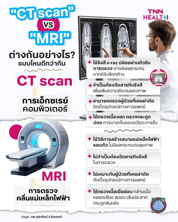 สำหรับเครื่อง "CT scan" และเครื่อง "MRI" มีความต่างกัน ดังนี้