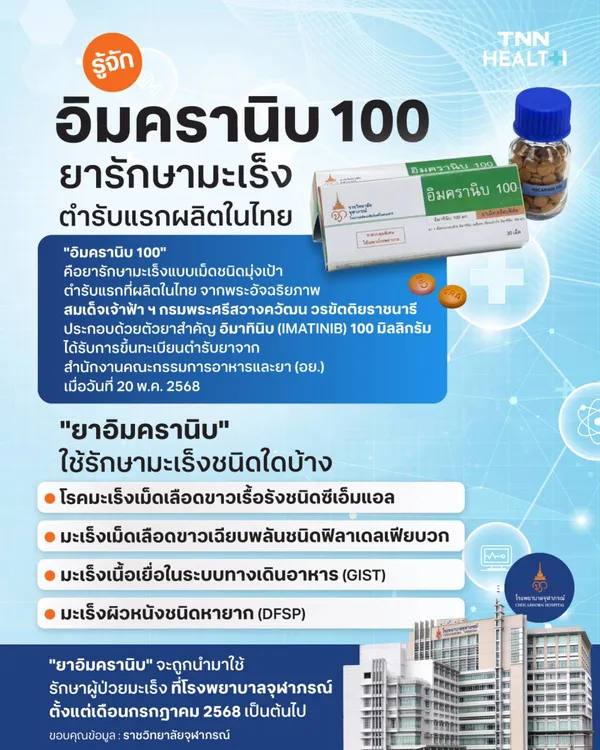 - "ยาอิมครานิบ 100" รักษาโรคมะเร็ง ตำรับแรกผลิตในไทย พระอัจฉริยภาพสมเด็จเจ้าฟ้าฯ
