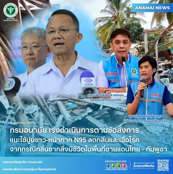 นายแพทย์ธิติ แสวงธรรม รองอธิบดีกรมอนามัย กล่าวว่า จากความห่วงใยของ นายสมศักดิ์ เทพสุทิน รัฐมนตรีว่าการกระทรวงสาธารณสุข ที่มีต่อสุขภาพประชาชน โดยเฉพาะทหาร ซึ่งปฏิบัติหน้าที่อยู่ที่บริเวณด่านหน้าชายแดนไทย – กัมพูชา ที่ได้รับผลกระทบจากกลิ่นซากสิ่งมีชีวิต ที่ส่งผลให้ประชาชนได้รับความเดือดร้อน และกระทบต่อความเป็นอยู่