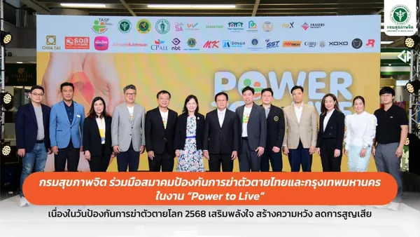 กรมสุขภาพจิต ร่วมมือสมาคมป้องกันการฆ่าตัวตายไทยและกรุงเทพมหานครในงาน “Power to Live” เนื่องในวัน ป้องกันการฆ่าตัวตายโลก 2568 เสริมพลังใจ สร้างความหวัง ลดการสูญเสีย