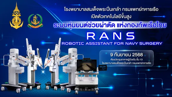กองทัพเรือ โดย โรงพยาบาลสมเด็จพระปิ่นเกล้า กรมแพทย์ทหารเรือ เปิดตัวนวัตกรรมทางการแพทย์ขั้นสูง “ระบบหุ่นยนต์ช่วยผ่าตัด แห่งกองทัพเรือไทย RANS : Robotic Assistant for Navy Surgery” เครื่องแรกของโรงพยาบาลในสังกัดกระทรวงกลาโหม