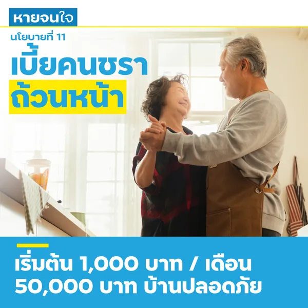 เพิ่มเบี้ยคนชราทุกคนตั้งแต่อายุ 60 ปี คนละ 1,000 บาทต่อเดือน