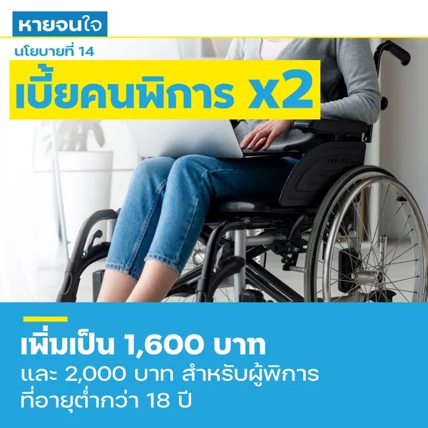 เพิ่มรายได้ขั้นต่ำสำหรับผู้พิการจาก 800 บาทต่อเดือนเป็น 1,600 บาทต่อเดือน