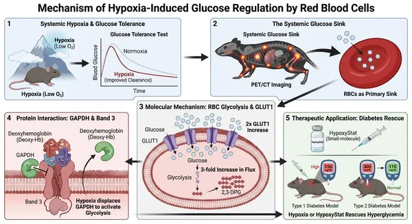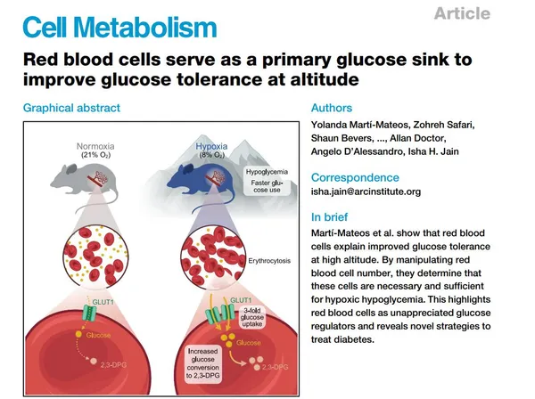 งานวิจัยนี้เริ่มต้นจากการตั้งคำถามตรงไปตรงมาที่ว่า ทำไมภาวะขาดออกซิเจน (Hypoxia) จึงช่วยให้ร่างกายจัดการกับน้ำตาลได้ดีขึ้น ทีมวิจัยได้ทำการทดลองในหนูโดยจำลองสภาพแวดล้อมที่มีออกซิเจนต่ำคล้ายกับบนภูเขาสูง และพบว่าหนูเหล่านี้มีการตอบสนองต่ออินซูลินและระดับน้ำตาลในเลือดที่ดีขึ้นอย่างชัดเจน แม้จะกลับมาอยู่ในสภาพอากาศปกติแล้ว ผลดีนี้ก็ยังคงอยู่ต่อเนื่องอีกหลายสัปดาห์ สิ่งที่น่าสนใจมาก ๆ คือ จากการสแกนร่างกายเพื่อดูการใช้น้ำตาลคือ อวัยวะหลักๆ อย่างกล้ามเนื้อ หัวใจ หรือตับ ไม่ใช่อวัยวะหลักที่ดึงน้ำตาลไปใช้เพิ่มขึ้นในสภาวะนี้ แต่น้ำตาลจำนวนมากกลับหายไปในระบบเลือด ซึ่งนำไปสู่การพิสูจน์ทราบว่า "เม็ดเลือดแดง" คือแหล่งดูดซับน้ำตาลขนาดใหญ่ที่ถูกมองข้ามมาโดยตลอด