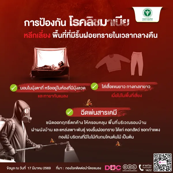 กรมควบคุมโรค กระทรวงสาธารณสุข ได้โพสต์เตือนประชาชน ระวัง"โรคลิชมาเนีย"โดยระบุว่า