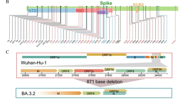 เมื่อพูดถึงความแตกต่างของ BA.3.2 กับโควิดสายพันธุ์ก่อนหน้า ความเปลี่ยนแปลงที่สำคัญอย่างหนึ่งในระดับพันธุกรรมคือการขาดหายไปของชิ้นส่วนที่เรียกว่า ORF7 และ ORF8 ซึ่งชิ้นส่วนเหล่านี้มักมีบทบาทในการตอบสนองต่อระบบภูมิคุ้มกันของมนุษย์ การหายไปของรหัสพันธุกรรมส่วนนี้ทำให้นักวิจัยตั้งข้อสังเกตว่าอาจส่งผลให้ตัวไวรัสมีความรุนแรงลดลง ซึ่งสอดคล้องกับการทดลองในห้องปฏิบัติการที่พบว่า BA.3.2 ทำลายเซลล์เพาะเลี้ยงในระดับที่ต่ำกว่าสายพันธุ์ดั้งเดิมและสายพันธุ์เดลตาอย่างเห็นได้ชัด