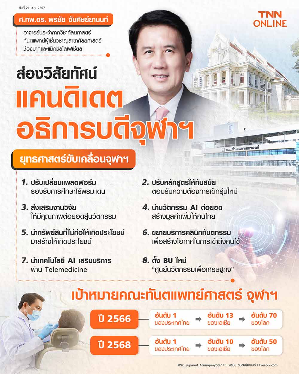 ศ.ทพ.ดร.พรชัย จันศิษย์ยานนท์ วางยุทธศาสตร์ขับเคลื่อนจุฬาฯ เอาไว้ทั้งหมด 8 ประการ