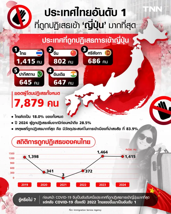- ไปถึง ไม่ได้แปลว่าได้เข้า ไทยครองอันดับ 1 ถูกปฏิเสธเข้าญี่ปุ่นมากที่สุดในปี 2024