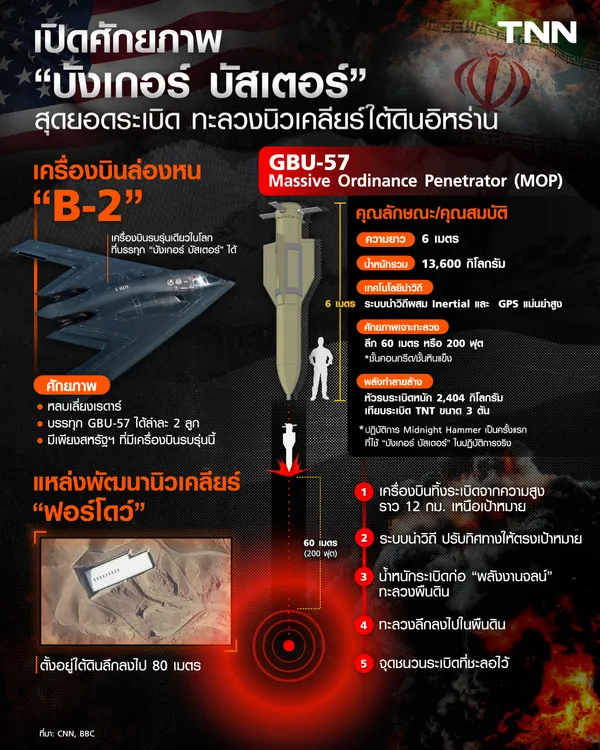 โดยปฏิบัติการ Midnight Hammer ถือเป็นครั้งแรกที่มีการใช้ระเบิดรุ่นนี้ในปฏิบัติการจริง โดยเฉพาะการทำลายแหล่งพัฒนานิวเคลียร์ “ฟอร์โดว์” ของอิหร่าน ที่อยู่ลึกลงไปใต้ดิน 80 เมตร