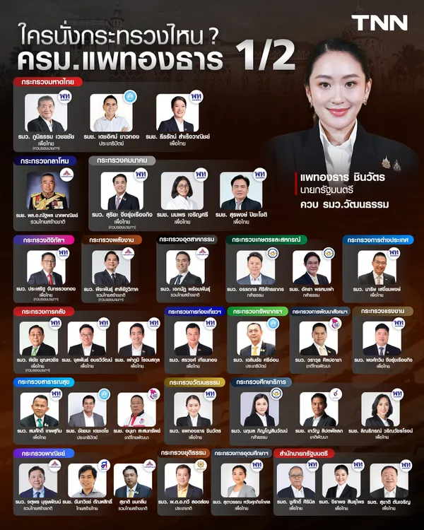 นายกรัฐมนตรี แพทองธาร ชินวัตร ควบ รมว.วัฒนธรรม