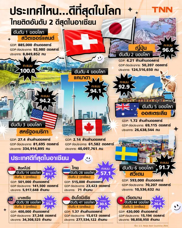 เว็บไซต์ usnews.com รายงานประเทศที่ดีที่สุดในโลกประจำปี 2025
