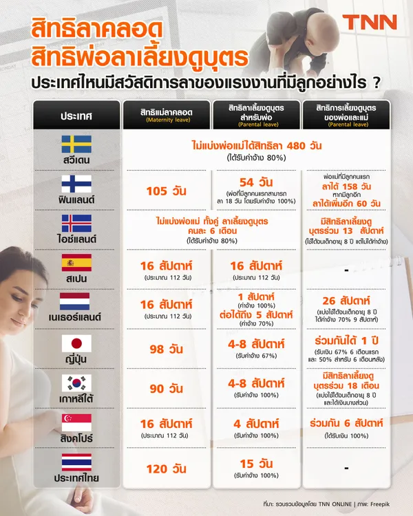 ในยุคที่การสร้างสมดุลระหว่างชีวิตการทำงานและครอบครัวเป็นเรื่องสำคัญ หลายประเทศทั่วโลกได้พัฒนาสวัสดิการแรงงานด้าน "สิทธิลาคลอด" และ "สิทธิในการลางานเพื่อดูแลบุตร" ให้ครอบคลุมทั้งบิดาและมารดา ซึ่งประเทศไทยเอง เมื่อเดือนที่ผ่านมา สภาก็ได้ผ่านการแก้กฎหมายให้มารดาได้สิทธิลาคลอดถึง 120 วัน