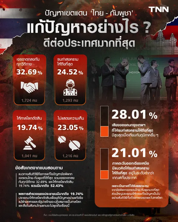รวมเจรจาตกลงกันทุกวิถีทาง 32.69% และให้ศาลโลกตัดสิน 19.74% รวมมีมากถึง 52.43%