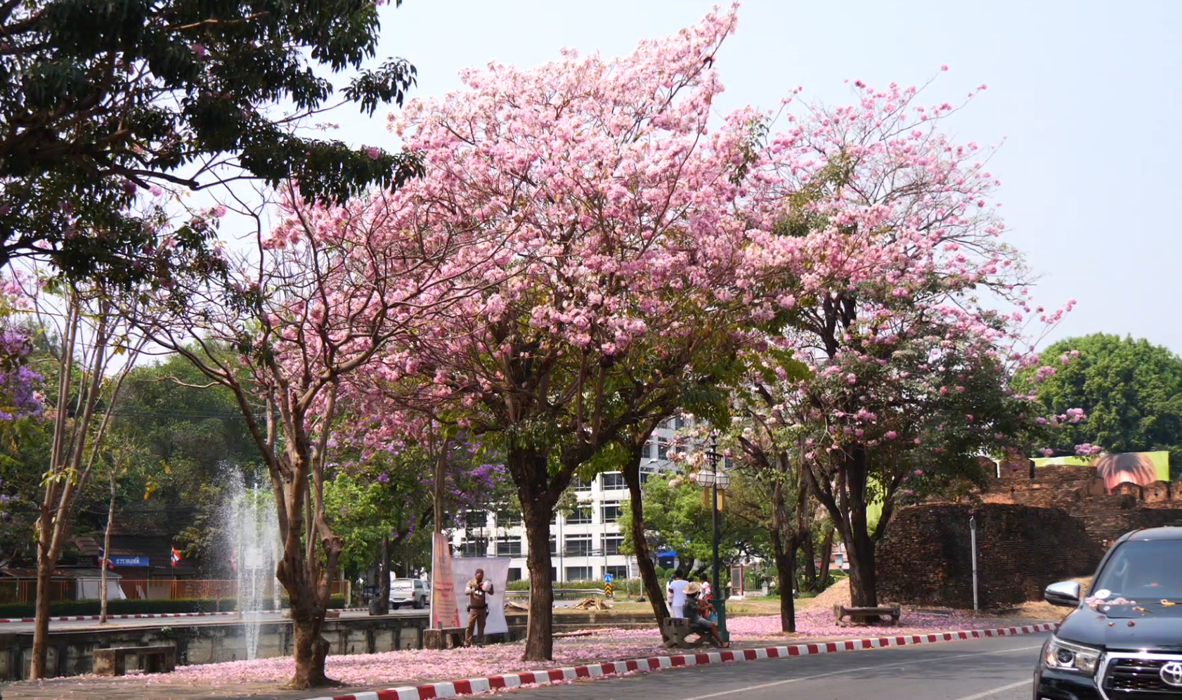 ชี้เป้า จุดถ่ายรูปเชียงใหม่ รอบคูเมือง บริเวณแจ่งกูเฮือง ชมพูพันธ์ทิพย์บานอวดความสวยงามต้อนรับลมร้อน โดยดอกสีชมพูจำนวนมากที่ร่วงหล่นลงเต็มทางเท้าจนกลายเป็นลานดอกไม้สีชมพูทำให้ประชาชนและนักท่องเที่ยวที่ผ่านไปพบเห็นต่างอดใจไม่ไหว พากันแวะไปถ่ายภาพเก็บความสวยงามอวดโลกโซเชียล ไม่เว้นแม้แต่ตำรวจจราจรที่ดูแลพื้นที่บริเวณดังกล่าวก็ยังขอแวะไปถ่ายภาพกับเขาด้วย