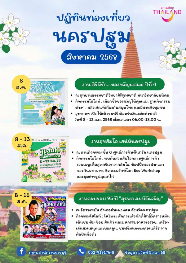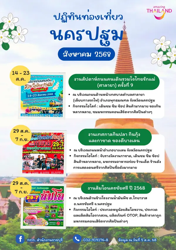 ปฏิทินกิจกรรมท่องเที่ยวจังหวัดนครปฐม เดือนสิงหาคม 2568