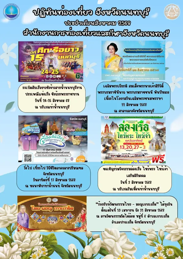 ปฏิทินท่องเที่ยวประจำเดือน สิงหาคม 2568 จังหวัดนนทบุรี