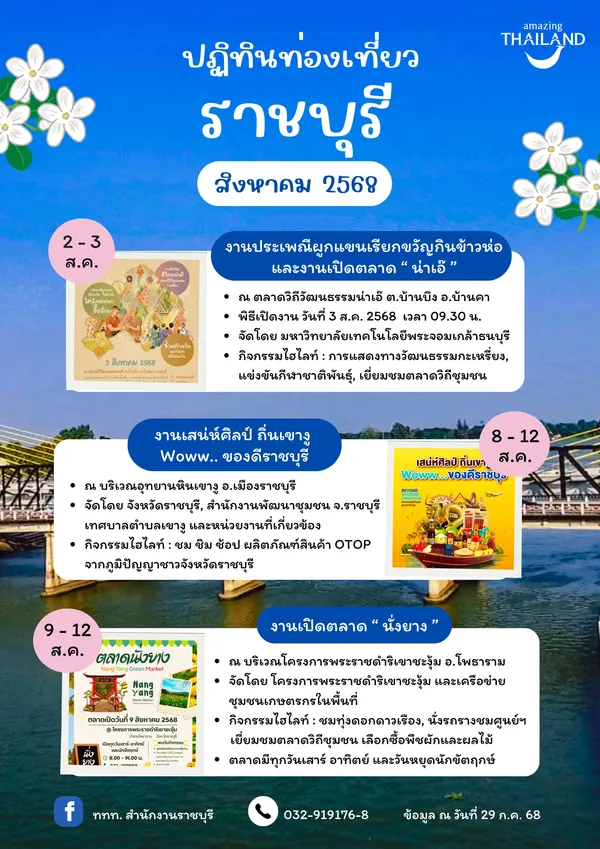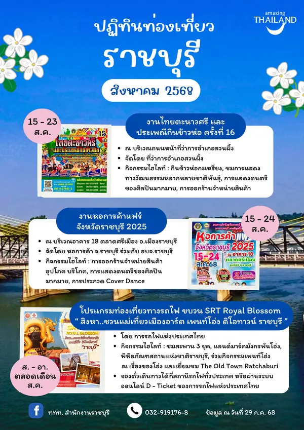 ปฏิทินกิจกรรมท่องเที่ยวจังหวัดราชบุรี เดือนสิงหาคม 2568