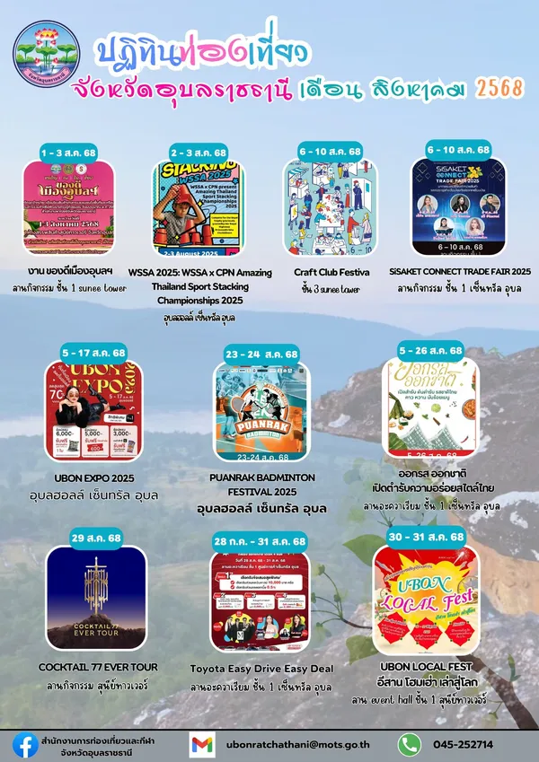 ปฏิทินท่องเที่ยวจังหวัเดอุบลราชธานี เดือนสิงหาคม 2568