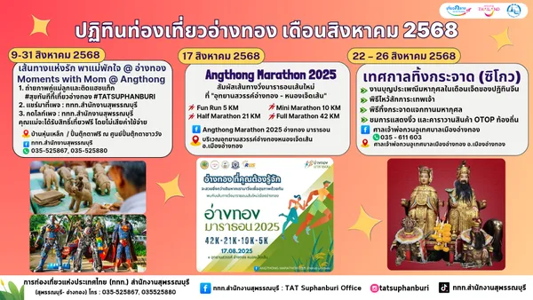ปฏิทินท่องเที่ยวอ่างทอง เดือนสิงหาคม 2568