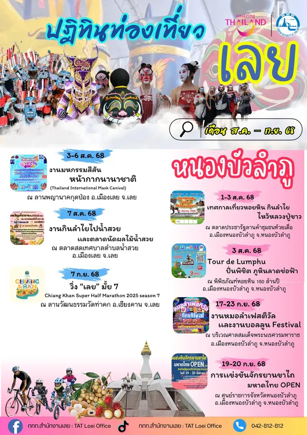 ปฏิทินท่องเที่ยวจังหวัดเลย และหนองบัวลำภู ในช่วงเดือน สิงหาคม - กันยายน 2568