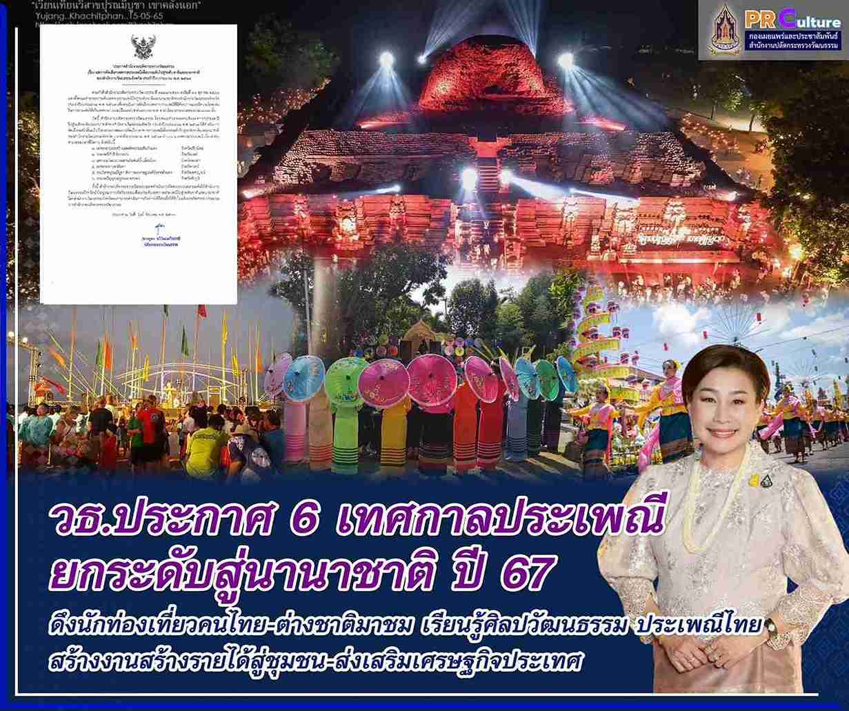 วธ.ประกาศ 6 เทศกาลประเพณี ยกระดับสู่นานาชาติ ปี 67 ดึงนักท่องเที่ยวคนไทย-ต่างชาติมาชม เรียนรู้ศิลปวัฒนธรรม ประเพณีไทย สร้างงานสร้างรายได้สู่ชุมชน-ส่งเสริมเศรษฐกิจประเทศ