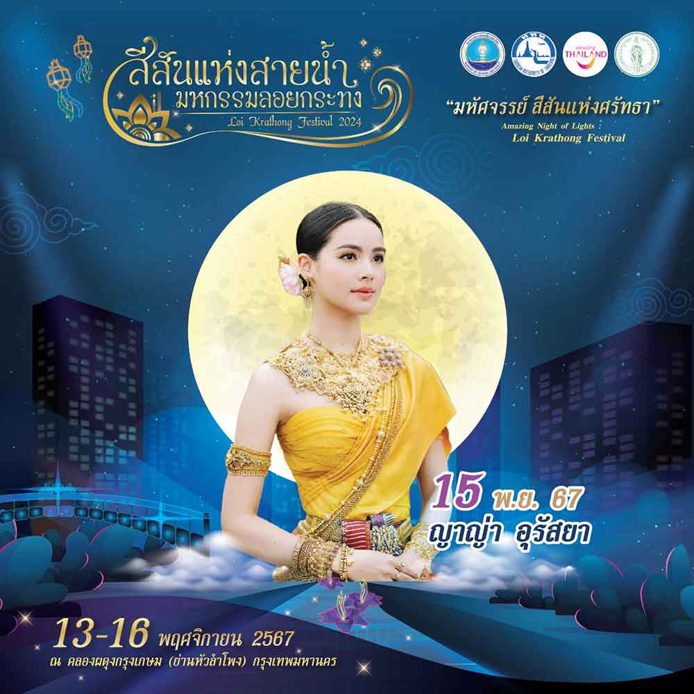 8. พิธีเปิดงานและขบวนแห่นางนพมาศทางน้ำสุดยิ่งใหญ่ จากพระราชพิธีจองเปรียง สู่การลอยกระทง นำขบวนโดย ญาญ่า อุรัสยา ในวันที่ 15 พ.ย. 67