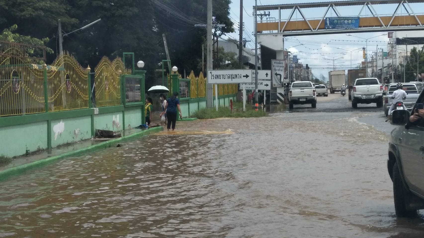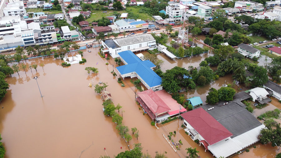 วันนี้( 5 ต.ค.65) สถานการณ์น้ำท่วมในพื้นที่จังหวัดนครราชสีมา ได้ส่งผลกระทบไปทั่ว โดยที่อำเภอชุมพวง มวลน้ำลำน้ำมาศ จากอำเภอลำปลายมาศ จังหวัดบุรีรัมย์ ยังคงไหลมาสมทบลงลำน้ำมูล ในอำเภอชุมพวงและอำเภอพิมาย จังหวัดนครราชสีมา ทำให้ขณะนี้อำเภอชุมพวงถูกน้ำเอ่อทะลักเข้าท่วมสถานที่ราชการ ทั้งที่ว่าการอำเภอชุมพวง เทศบาลตำบลชุมพวง สถานีตำรวจภูธรอำเภอชุมพวง ที่ทำการไปรษณีย์ชุมพวง บ้านพักข้าราชการ โรงเรียนหลายแห่ง และตลาดสดเทศบาลตำบลชุมพวง ระดับน้ำท่วมสูง 60-70 เซนติเมตร บางจุดน้ำท่วมสูงกว่า 1 เมตร