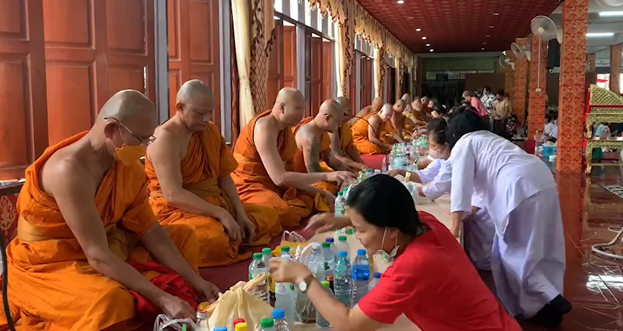 จากนั้นได้มีการนิมนต์พระสงฆ์พิจารณาอาหารที่ชาวบ้านได้นำมาตักบาตร ซึ่งเป็นธรรมเนียมของพระในนิกายธรรมยุทธ ที่จะให้พระสงฆ์เดินพิจารณาอาหารเพื่อนำอาหารมาใส่ภายในบาตรของพระสงฆ์แต่ละรูปก่อนที่จะจะนำไปฉันท์ ซึ่งหลังจากพระสงฆ์ได้มีการพิจารณาอาหารแล้วนั้นก็จะเป็นในส่วนของแม่ชีและชาวบ้านที่นุ่งขาวห่มขาวมาถือศีลที่วัดในช่วงวันออกพรรษา สุดท้ายก็จะเปิดโอกาสในชาวบ้านได้มีโอกาสกินข้าวก้นบาตรพระ