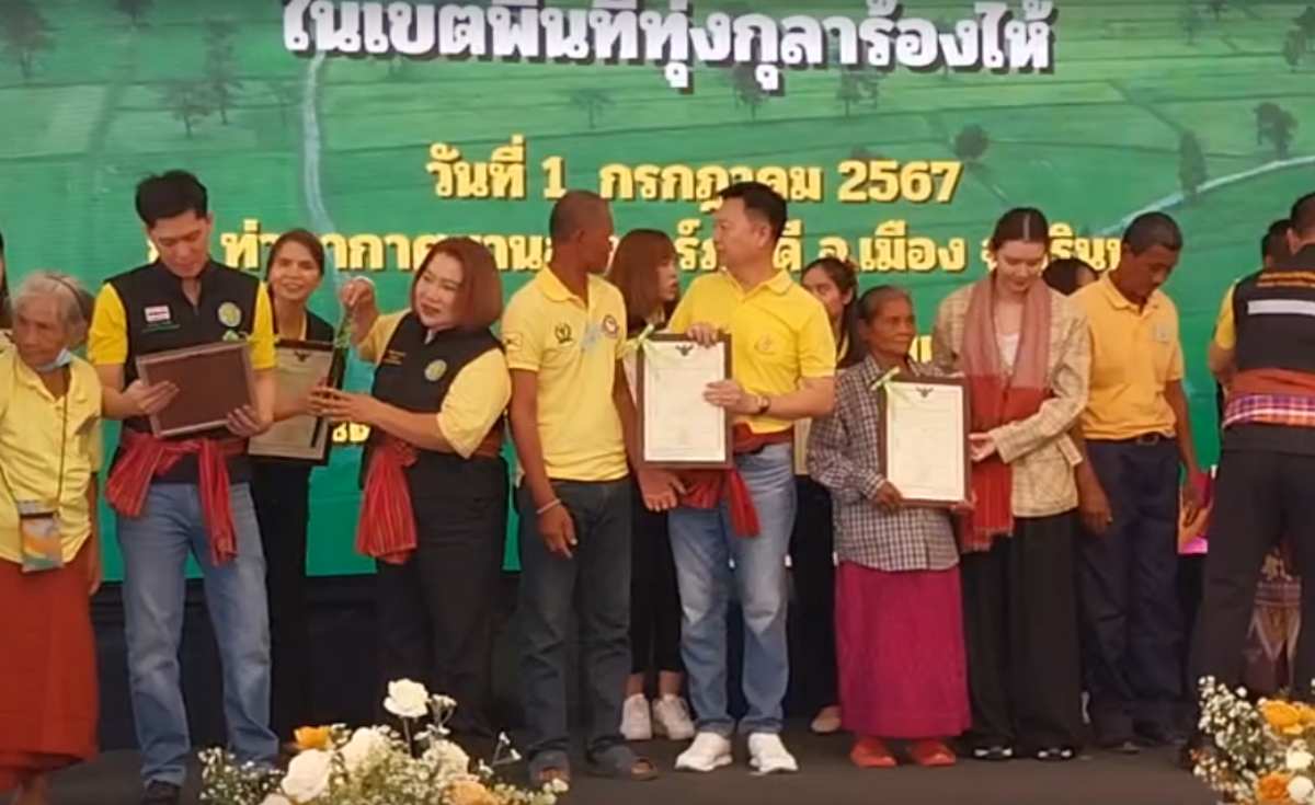 วันที่ 1 กรกฎาคม 2567 ร้อยเอก ธรรมนัส พรหมเผ่า รัฐมนตรีว่าการกระทรวงเกษตรและสหกรณ์ ลงพื้นที่ตรวจติดตามการปฏิบัติการฝนหลวงในเขตพื้นที่ทุ่งกุลาร้องไห้ โดยมี นายสุพิศ พิทักษ์ธรรม อธิบดีกรมฝนหลวงและการบินเกษตร พร้อมด้วยหน่วยงานในสังกัดกระทรวงเกษตรและสหกรณ์ในพื้นที่ให้การต้อนรับ โดยรัฐมนตรีว่าการกระทรวงเกษตรและสหกรณ์ ได้รับฟังรายงานการปฏิบัติการฝนหลวงในเขตพื้นที่ทุ่งกุลาร้องไห้ในช่วงที่ผ่านมา พร้อมมอบนโยบายแนวทางการปฏิบัติงานเพื่อช่วยบรรเทาปัญหาฝนทิ้งช่วง และให้กำลังใจเจ้าหน้าที่กรมฝนหลวงและการบินเกษตร ในการปฏิบัติภารกิจให้เกิดความสำเร็จลุล่วงไปได้ด้วยดี รวมถึงพบกับผู้แทนเกษตรกร ผู้แทนผู้ประกอบการค้าข้าว เพื่อการรับฟังปัญหาอุปสรรคในด้านการบริหารจัดการทรัพยากรน้ำ และนำมาใช้เป็นแนวทางในการวางมาตรการให้ความช่วยเหลือจากกระทรวงเกษตรและสหกรณ์ จากนั้นได้มอบเมล็ดข้าวพันธุ์ดีให้แก่ผู้แทนเกษตรกร สำหรับนำไปแจกจ่ายให้แก่เกษตรกรที่ยังไม่สามารถหว่านข้าวได้ในช่วงที่ผ่านมา เนื่องจากพื้นที่นั้นมีสภาพแห้งแล้งเกินไป รวมถึงเกษตรกรที่ประสบปัญหาภัยแล้งจนได้รับความเสียหายจากการหว่านข้าวในรอบแรก และมอบโฉนดเพื่อการเกษตร ให้แก่ผู้แทนเกษตรกร จำนวน 100 ราย เพื่อนำไปใช้ประโยชน์เฉพาะการเกษตรในการพัฒนาต่อยอด ให้เกิดการสร้างอาชีพ สร้างรายได้ และความมั่นคงในชีวิต