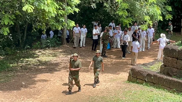 แต่ขณะเดียวกันในช่วงบ่าย กลับพบว่า ชาวกัมพูชาจำนวนมาก ขึ้นมาเที่ยว พร้อมถ่ายรูปคู่กับตัวปราสาทตาเมือนธมเช่นกัน โดยมีทหารกัมพูชาที่ปลดอาวุธ คอยแนะนำสถานที่และดูแลความปลอดภัย เช่นเดียวกันกับทหารไทยที่คอยดูแลความปลอดภัยนักท่องเที่ยวไทยอย่างใกล้ชิดเช่นกัน