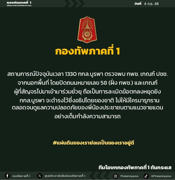 ที่มาข้อมูล : กองทัพภาคที่ 1
