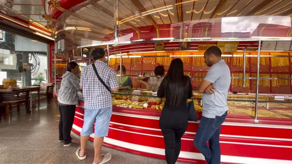ด้านนายบุญชู ศัยศักดิ์พงษ์ เจ้าของร้านทองตุ้นเฮงหลี บอกว่า ราคาทองสูงที่สุดในรอบ 25 ปี โดยตั้งแต่ต้นปีมาถึงตอนนี้ราคาปรับขึ้นเกินบาทละ 20,000 บาทแล้ว ซึ่งเป็นเรื่องที่เกินความคาดหมาย และแนวโน้มก็ยังจะปรับราคาสูงขึ้นไปอีก ส่วนที่เข้าร้านมีทั้งที่นำมาขาย ซื้อให้ตัวเอง งานแต่ง และซื้อตุนเพื่อเก็งกำไร ทั้งทองแท่งและทองรูปพรรณ เพราะเชื่อว่าราคาจะปรับขึ้นอีก หากไม่ซื้อวันนี้ก็ยากมากขึ้นหากจะซื้อในอนาคต