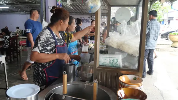 บรรยาศที่ร้านอาหาร ร้านกาแฟ ถ.รักจันทร์ ต.ทับเที่ยง อ.เมือง จ.ตรัง บรรยากาศของการเริ่มใช้โครงการคนละครึ่งพลัส เป็นไปอย่างคึกคัก โดยประชาชนบางส่วนได้เริ่มนำสิทธิมาใช้จ่ายซื้อเครื่องดื่มและอาหารกับร้านค้าที่เข้าร่วมโครงการแล้ว