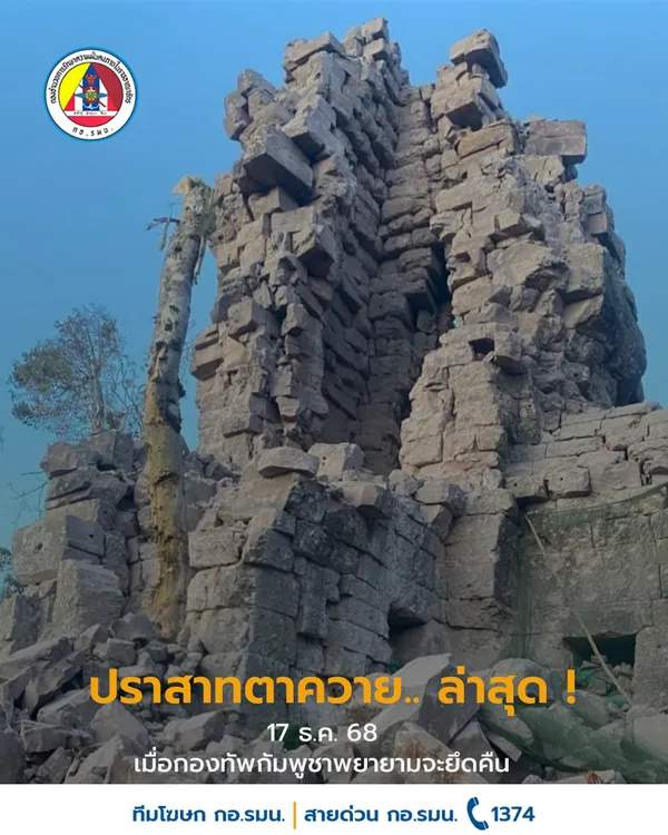- กรมศิลปากรยืนยัน ซ้อม "ปราสาทตาควาย" เสียหายจากปะทะได้แน่นอน