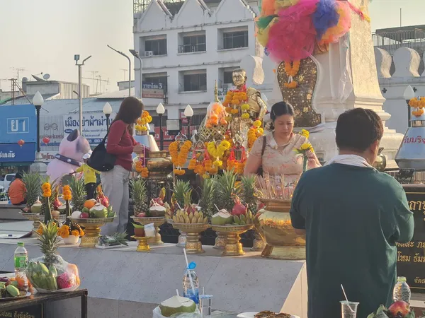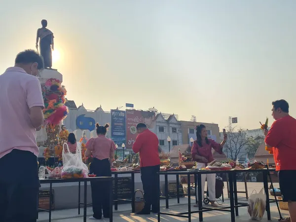 โดยบรรยากาศรอบบริเวณลานอนุสาวรีย์ท้าวสุรนารี พบว่า เครื่องเซ่นไหว้ที่ประชาชนนำมาในปีนี้ ยังคงเน้นตามธรรมเนียมโบราณที่มีความหมายอันเป็นมงคล ประกอบด้วย อาหารคาว อย่างเช่น ไก่ต้ม เป็ดพะโล้ และหมูต้ม นอกจากนี้ ยังมีผลไม้มงคลนานาชนิด อาทิ ส้ม แอปเปิ้ล และสับปะรด รวมถึง ขนมเข่งและขนมเทียน ที่จัดวางอย่างสวยงาม ท่ามกลางเสียงประทัดที่ดังขึ้นเป็นระยะ ตามความเชื่อในการขับไล่สิ่งชั่วร้าย