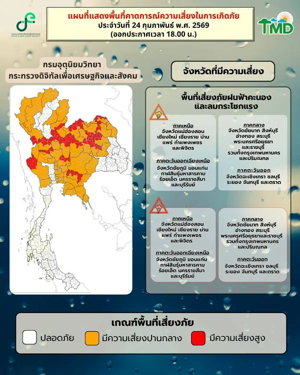 - 26 จังหวัดเช็กด่วน! รับมือ พายุฤดูร้อน ฝนถล่ม ลมแรง 25 ก.พ.