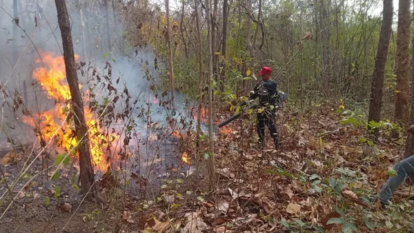 เจ้าหน้าที่เร่งดับไฟป่าตลอดทั้งวันพฤหัสบดีที่ 26 ก.พ. ที่ผ่านมา ที่จังหวัดเชียงใหม่ นายฐานันดร พรมมณี หัวหน้าสถานีควบคุมไฟป่าอมก๋อย รายงานการปฏิบัติงานในพื้นที่เขตรักษาพันธุ์สัตว์ป่าอมก๋อย หลังตรวจพบจุด Hotspot บริเวณห้วยมะไฮ ต.ม่อนจอง อ.อมก๋อย โดยเจ้าหน้าที่สถานีควบคุมไฟป่าร่วมกับหน่วยพิทักษ์ป่านางนอน และอาสาสมัครรวม 11 นาย เดินเท้าเข้าตรวจสอบและปฏิบัติการ ใช้เวลาประมาณ 1.30 ชม.จึงสามารถดับไฟได้ พบป่าเบญจพรรณได้รับความเสียหาย 29 ไร่