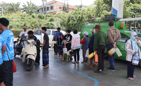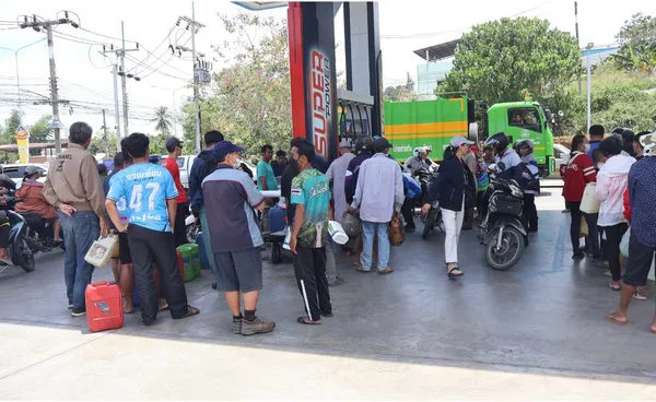 ขณะที่ปั๊มน้ำมัน พีที ที่เปิดให้บริการ เวลา 06.15 น. ก็เช่นกัน มีประชาชนนำรถมาต่อแถวเข้าคิวรอเติมน้ำมันก่อนปั๊มเปิดให้บริการกันเป็นจำนวนมากทุกวัน ซึ่งทางปั๊มจะปิดในเวลา 12.00 น. แต่บางวันก็ต้องปิดก่อนเพราะน้ำมันหมด ทางปั้ม กำหนดมาตรการจำกัดปริมาณการเติมน้ำมัน ไม่เกินคนละ 1,000 บาท ไม่ให้เติมใส่แกลลอน ขณะที่พี่น้องเกษตรกรก็ต้องออกมาซื้อน้ำมันไปใช้กับเครื่องสูบน้ำ เพื่อรดน้ำต้นไม้ ในช่วงหน้าแล้งทุกวัน จากที่เมื่อก่อน สามสี่วันมาซื้อครั้ง แต่ปัจจุบันถูกจำกัดปริมาณจึงต้องออกจากสวนมาซื้อน้ำมันทุกวันเป็นเวลานานกว่าครึ่งเดือนแล้ว