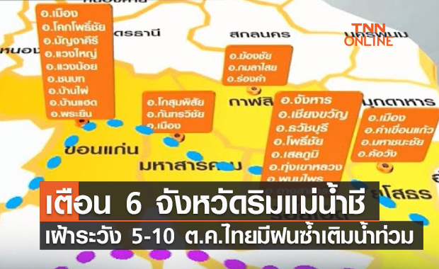 - (คลิป) เตือน 6 จังหวัดริมแม่น้ำชี-เฝ้าระวัง 5-10 ต.ค.ไทยมีฝนซ้ำเติมน้ำท่วม