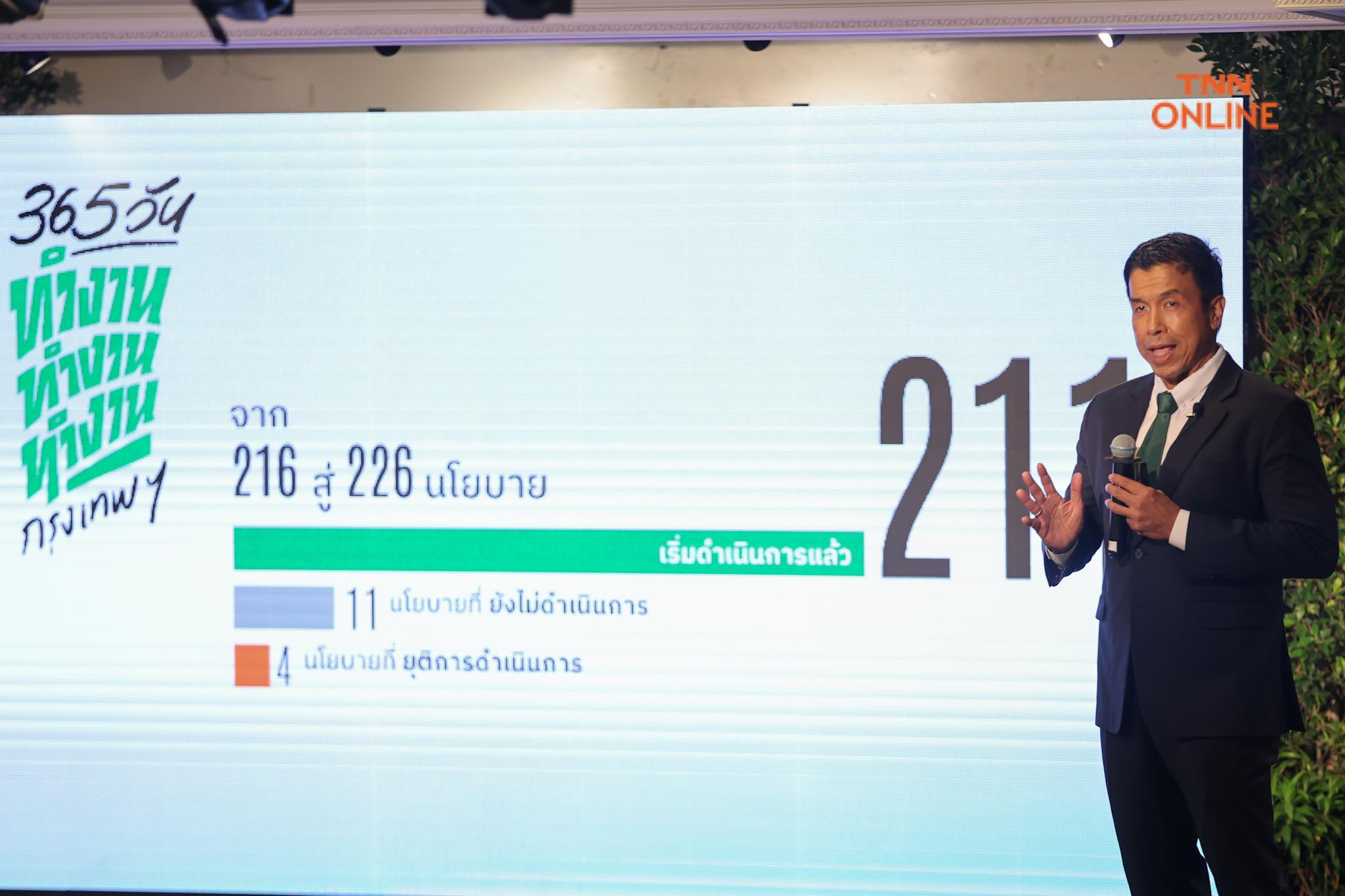 สำหรับนโยบายจากวันแรกที่เข้ามาทำงาน มี 216 นโยบาย ขยายสู่ 226 นโยบาย 1 ปี ที่ผ่านมา
