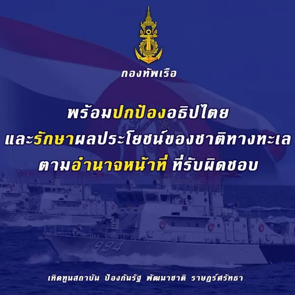 ขณะที่ เพจเฟซบุ๊ก กองทัพเรือ Royal Thai Navy กองทัพเรือ พร้อมปกป้องอธิปไตยและรักษาผลประโยชน์ของชาติทางทะเล ตามอำนาจหน้าที่ที่รับผิดชอบ