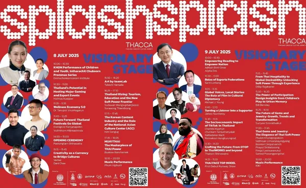รัฐบาลไทย ร่วมกับ สำนักงานส่งเสริมวัฒนธรรมสร้างสรรค์ (THACCA) จัดงาน Soft Power ที่ใหญ่ที่สุดในเอเชียตะวันออกเฉียงใต้ “SPLASH – Soft Power Forum 2025” ระหว่างวันที่ 8-11 กรกฎาคม 2568 เวลา 10.00-20.00 Hall 1-4 ศูนย์การประชุมแห่งชาติสิริกิติ์ โดยเชิญชวนประชาชนมาร่วมสัมผัสปรากฏการณ์ซอฟต์พาวเวอร์ไทยแบบครบวงจร ภายใต้แนวคิด “โอกาสประเทศไทยในอุตสาหกรรมวัฒนธรรมสร้างสรรค์” ซึ่งเปรียบเสมือน “สายน้ำแห่งโอกาส” ที่กำลังหล่อเลี้ยงทุนวัฒนธรรมไทยให้เติบโตสู่เศรษฐกิจใหม่อย่างยั่งยืน ผ่านการผนึกกำลังของ 14 อุตสาหกรรมซอฟต์พาวเวอร์ ต่อยอดสู่ตลาดโลกอย่างเป็นรูปธรรม อีกหนึ่งหัวใจของงานอยู่ที่ Visionary Stage ซึ่งรวบรวม "ผู้รู้จริง" แนวหน้าจากไทยและต่างประเทศ เพื่อแลกเปลี่ยนมุมมองและแบ่งปันประสบการณ์สร้าง “มูลค่าทางวัฒนธรรม” ให้ทรงพลัง รวมถึง "ผู้นำ" ที่ร่วมขึ้นเวทีแลกเปลี่ยนอย่างคับคั่ง อาทิ