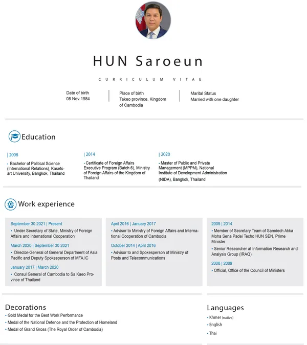 - ที่ปรึกษากระทรวงการต่างประเทศและความร่วมมือระหว่างประเทศของกัมพูชา