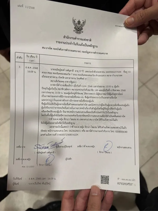 เมื่อช่วงเย็นวันที่ 6 สิงหาคม 2568 นายณัชชญ์พงศ์ วงศ์มูลาลี สมาชิกวุฒิสภา ได้เข้าแจ้งความลงบันทึกประจำวันที่ สน.บางโพ หลังตรวจพบว่ามีลายมือชื่อของตนปรากฏอยู่ในคำร้องยื่นต่อประธานวุฒิสภา โดยระบุชัดว่าไม่เคยเห็นเอกสารดังกล่าว ไม่เคยลงชื่อ และไม่ได้มอบอำนาจให้บุคคลใดดำเนินการแทน