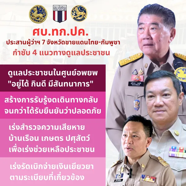 ศบ.ทก.ปค.มท. ประสานผู้ว่าฯ 7 จังหวัดชายแดนไทย-ก้มพูชา กำชับ 4 แนวทางดูแลประชาชน