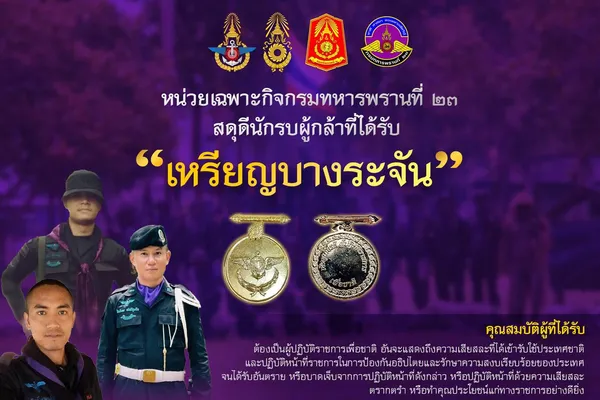"เหรียญบางระจัน" เป็นเหรียญที่จัดทำขึ้นเพื่อยกย่องผู้ที่ได้รับบาดเจ็บหรือเสียชีวิตในการปฏิบัติหน้าที่เพื่อชาติ โดยชื่อเหรียญมีความหมายเชิงสัญลักษณ์ที่เชื่อมโยงกับวีรชนแห่งบ้านบางระจันที่ พลีชีพเพื่อปกป้องแผ่นดินไทย ซึ่งสะท้อนถึงความกล้าหาญและความเสียสละที่ทหารหาญเหล่านี้ได้แสดงออกมา "วีรกรรมของท่านจะจารึกอยู่ในหัวใจคนไทยตราบนานเท่านาน" เพื่อเป็นอนุสรณ์เตือนใจให้คนไทยรุ่นหลังได้จดจำและซาบซึ้งในความเสียสละของพวกเขา